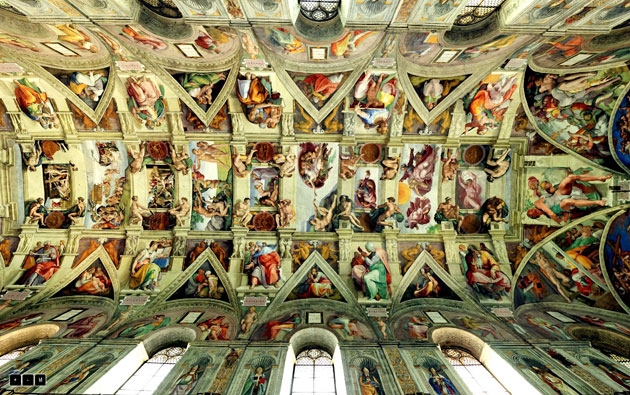 교황 율리우스 2세가 시스티나 성당의 천장화를 주문했을 때에는 밋밋한 천장에 푸른 바탕을 칠하고, 덩굴 무늬로 장식하려는 계획밖에 없었다. 그러나 미켈란젤로는 이곳에 인류의 탄생화 죽음을 표현하는 340여 개의 인물상을 그려 넣어 르네상스 시기를 통틀어 가장 위대한 작품을 만들어 냈다. 이러한 대작을 제자도 쓰지 않고 본인 혼자서 4년 만에 완수해 냈다는 것은 이 작업에 대한 그의 집념과 열정을 증명한다.