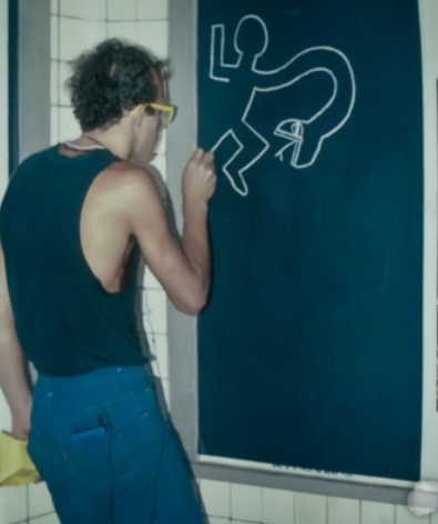 처음 키스해링의 낙서는 뉴욕의 지하철 광고판에 흰 분필로 단순한 형상을 그렸다.
